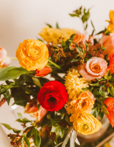 A premium selection of seasonally rotating garden flowers including ranunculus, roses, veronica, butterfly ranunculus and flowering foliage - a garden style design in a lovely ceramic vessel. Also available in a contempory asymetric design. This arrangement is made to leave a sunny impression on it’s recipient.